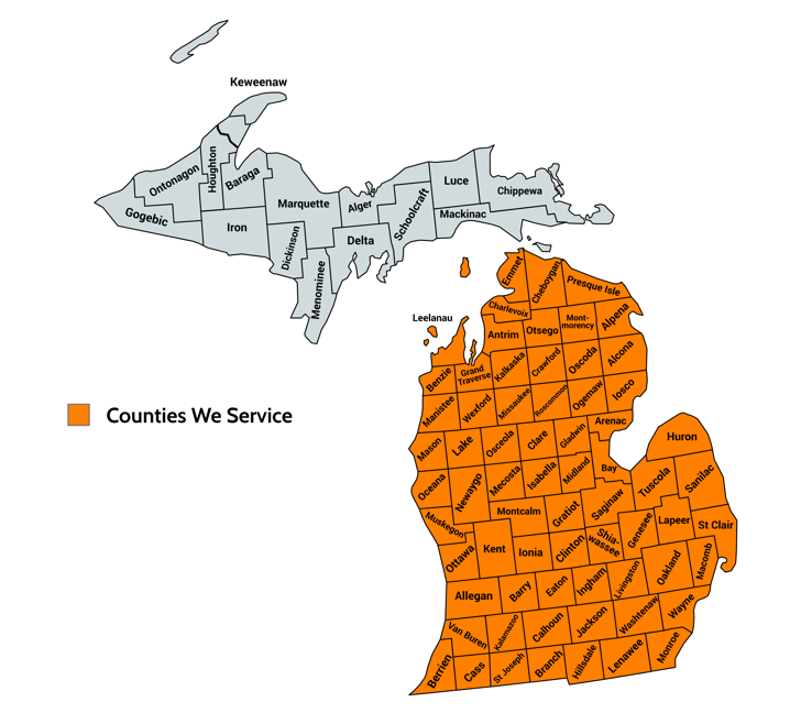 D Poole provides commercial and kitchen cleaning service to all over the state of Michigan. We service areas 60-90 miles* from our warehouse/ depot including the following counties: